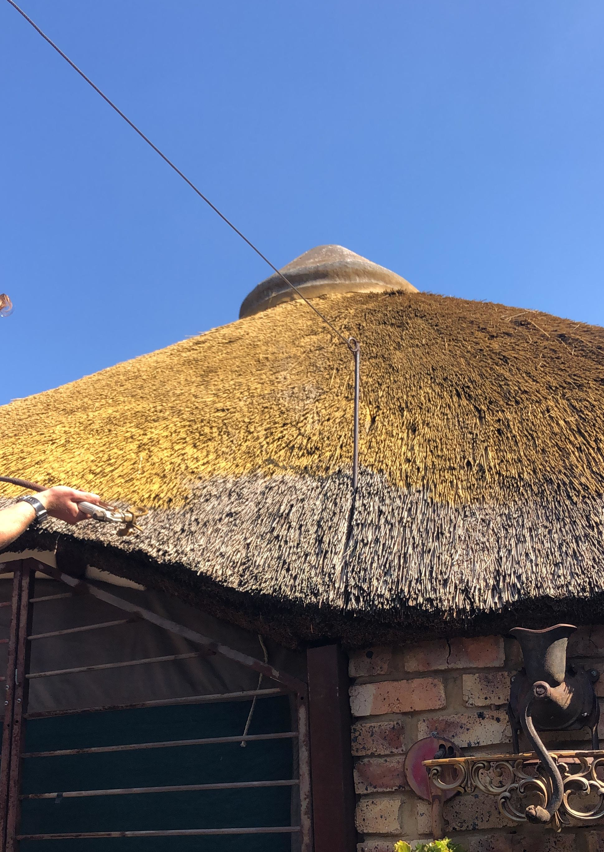 Specialised treatments for thatch roof restoration to rejuvenate appearance, crucial fireproofing for enhanced safety, and solutions for dust reduction - Roof Cleaning & Moss Removal